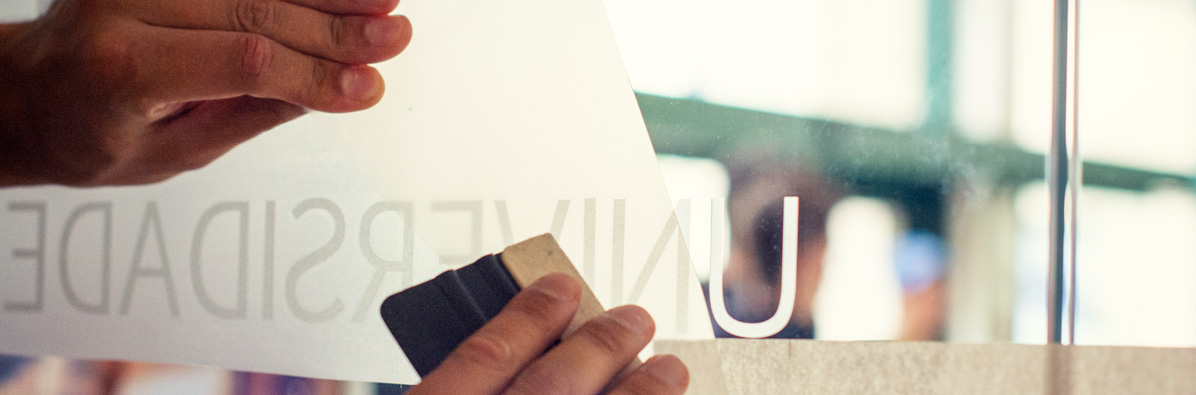 Além de ações de reabilitação e restauro ainda são desenvolvidas, ao longo de todo o ano, diversas acções de melhoria e segurança um pouco por toda a nossa universidade. A última intervenção de 2019, consistiu em sinalizar as 4 portas de vidro que ligam o átrio ao corredor dos elevadores.